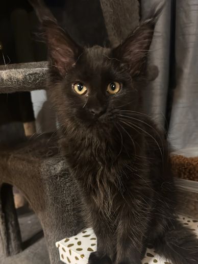 Mojo is the life of the party here at Dashing Coons, and her playful, curious nature keeps us endlessly entertained! Always wanting to be in the middle of the action, Mojo loves exploring every corner, "helping" with chores, and ensuring she’s involved in whatever her humans are up to. Despite her mischievous streak, Mojo has a loving, affectionate side and adores snuggling with her favorite people—especially her 93-year-old grandpa, who she has a special bond with.