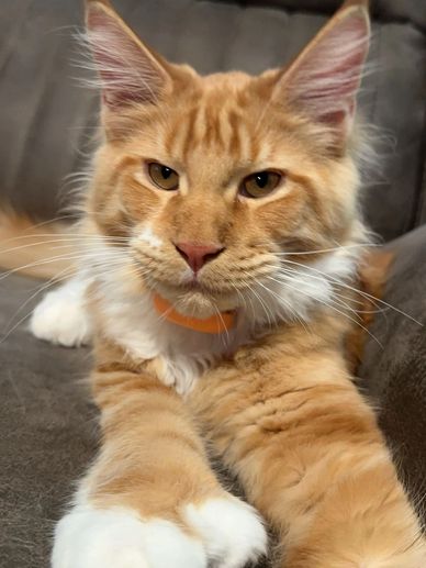 Meet Cyrus, our majestic European Maine Coon, boasting an impressive pedigree from Russia and Ukraine. Cyrus is not your ordinary cat; he thrives on engaging in hide and seek and fetching, showcasing his playful and intelligent nature. His love for rough back scratches adds to his unique personality, making him a beloved member of our family. Cyrus embodies the grandeur and spirited essence of the Maine Coon breed, making him a wonderful father for your new kitten.